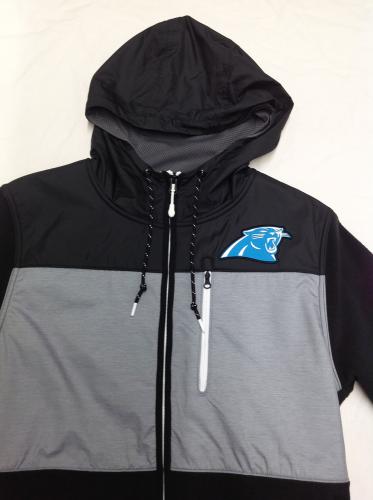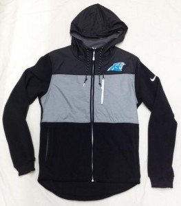 商品名: カロライナ パンサーズ ナイキ ’2016 サイドライン チャンプドライブ フリース FullZIP パーカー (黒/グレー)/ Carolina Panthers
