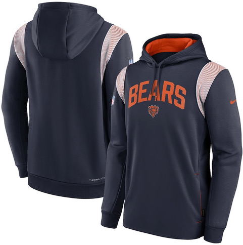シカゴ ベアーズ ナイキ ’22 サイドライン アスレティック スタック プルオーバー サーマフィット パーカー(紺)/ Chicago Bears