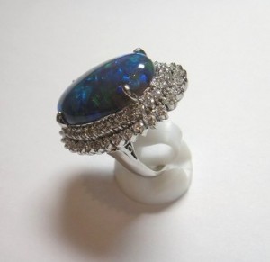 たとえば、下記の写真のオパールのラウンドダイアメレーの取り巻きプラチナリングは
