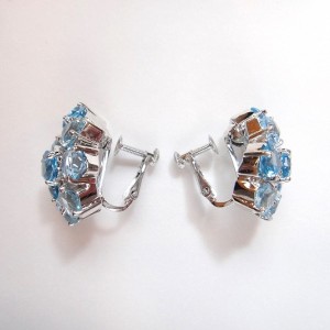 <イヤリングの金具をし心地の良い金具に交換>K18ホワイトゴールド製アクアマリンとダイアのイヤリングを着けやすいネジバネ式金具に交換加工