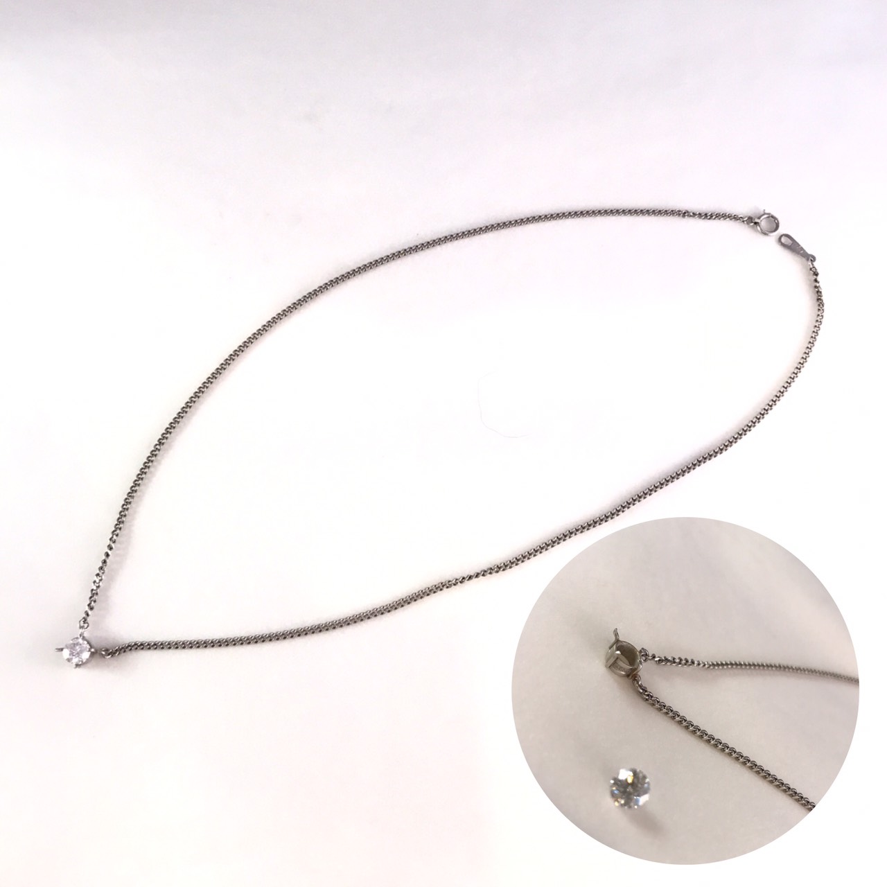 今回、プラチナ850製ネックレスに付いていたダイアモンドルース(裸石)を利用してリングへのリフォームを承りました。