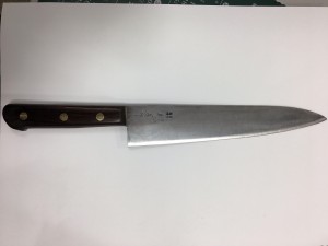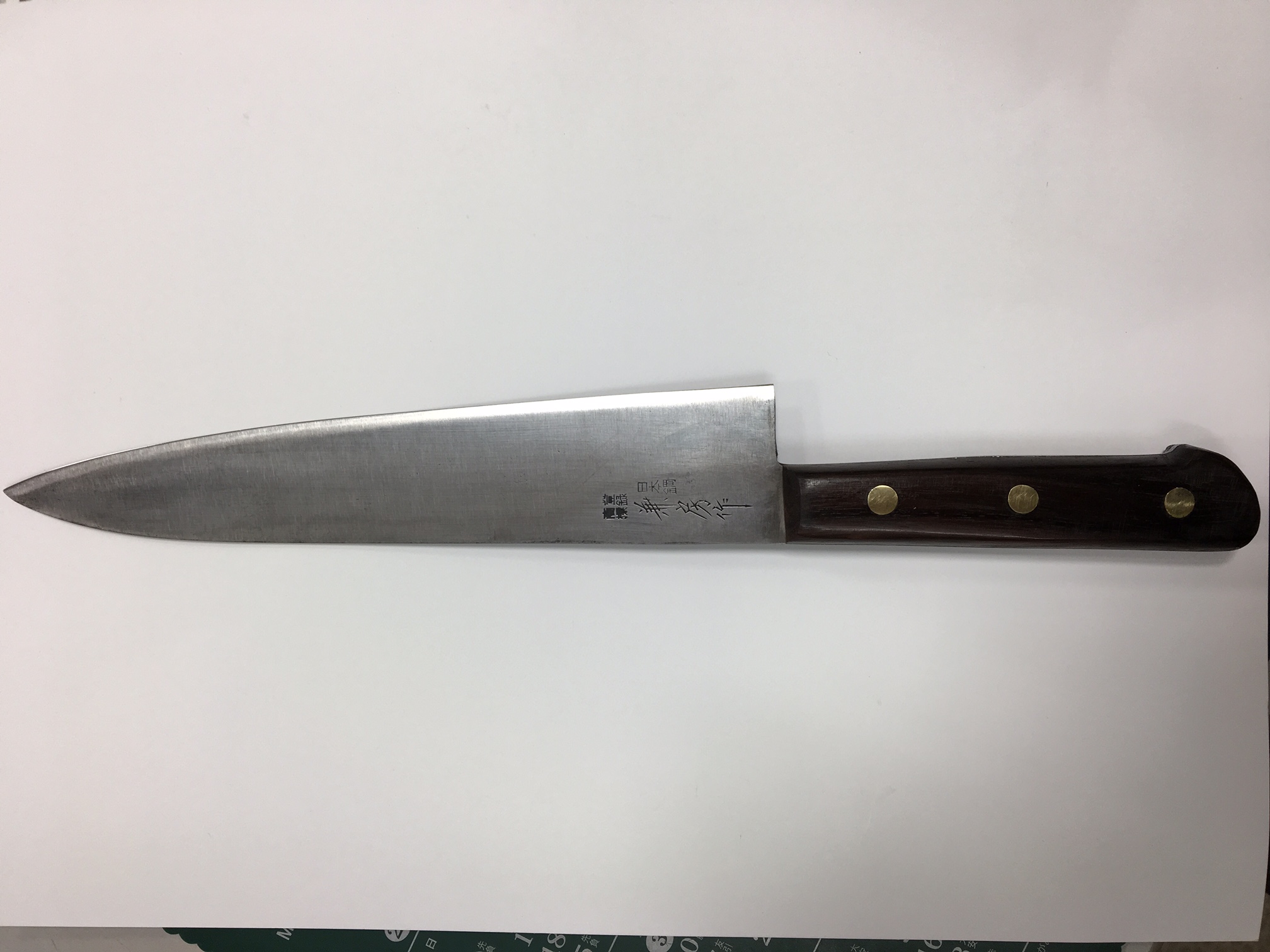 包丁の柄の部分が腐食していましたので木を取り外し、中子を溶接することにしました。それに伴い
