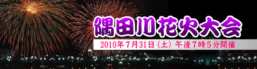 | 日 時 | 平成22年7月31日(土) 〔第一会場〕午後7時05分〜午後8時30分 〔第二会場〕午後7時30分〜午後8時30分 荒天のため実施できないときは翌8月1日(日)に順延し、両日とも実施できない場合は中止する。なお、雨天など実施の可否が確定できない天候の場合は当日の午前10時に、荒天などの場合には当日の午前8時に、それぞれ実施の可否を決定する。 |