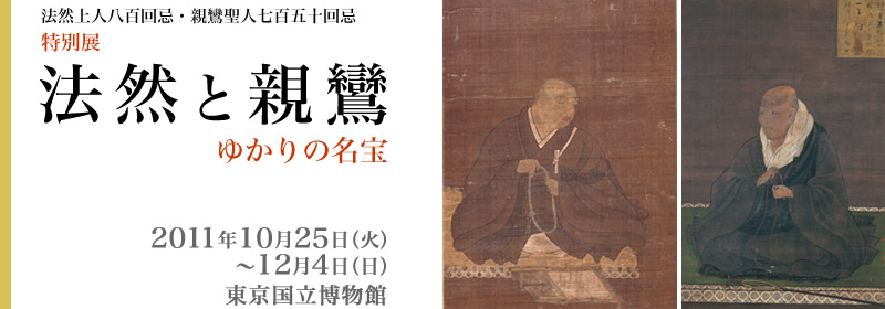 この特別展は、法然没後800回忌、親鸞没後750回忌を機に、両宗派からの全面的な協力を得て、法然と親鸞ゆかりの名宝を一堂にあつめ、その全体像をご紹介する、史上初の展覧会です。国宝・重要文化財が半数を占める第一級の美術品およそ180件をとおして、二人の生き方やその魅力をご紹介します。大震災に見舞われ、社会の転換期を迎える今日、二人の教えと生き方は現代人にも大きな示唆を与えるに違いありません。
